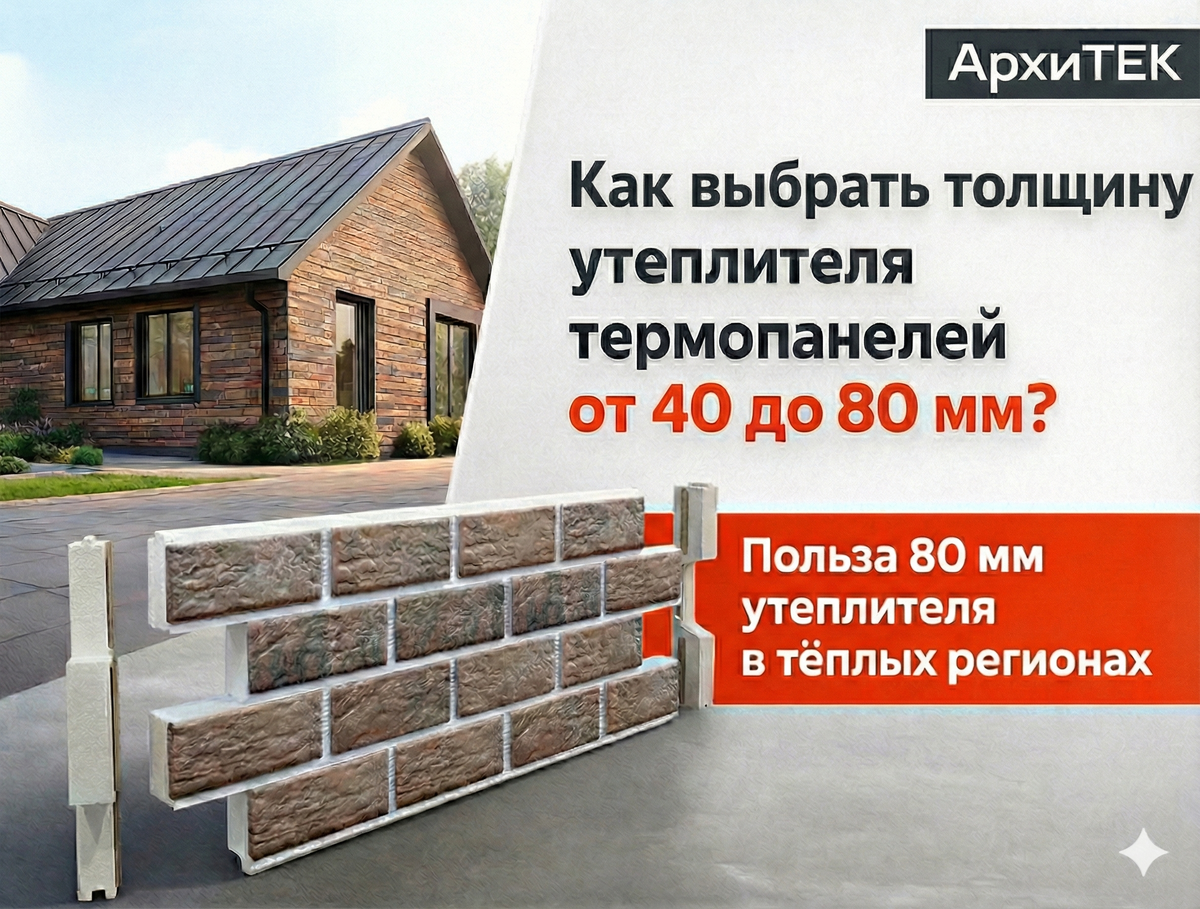 Фасадные термопанели с клинкерной плиткой – это современное решение для утепления и облицовки фасада, сочетающее теплоизоляцию и декоративный эффект «под кирпич» в одном материале. Ключевой компонент такой панели – утеплитель из ПФП *(плотного фасадного пенополистирола) определённой толщины. От выбора толщины ПФП (40, 50, 60, 70 или 80 мм) зависит энергоэффективность дома, комфорт в помещениях и расходы на отопление. В этой статье эксперты компании АрхитеК объясняют технические различия между толщинами, развенчивают мифы об «избыточности» 80 мм и показывают, почему даже в тёплых регионах (Крым, Краснодарский край) максимальная толщина утеплителя – это стратегически верное решение для вашего дома.