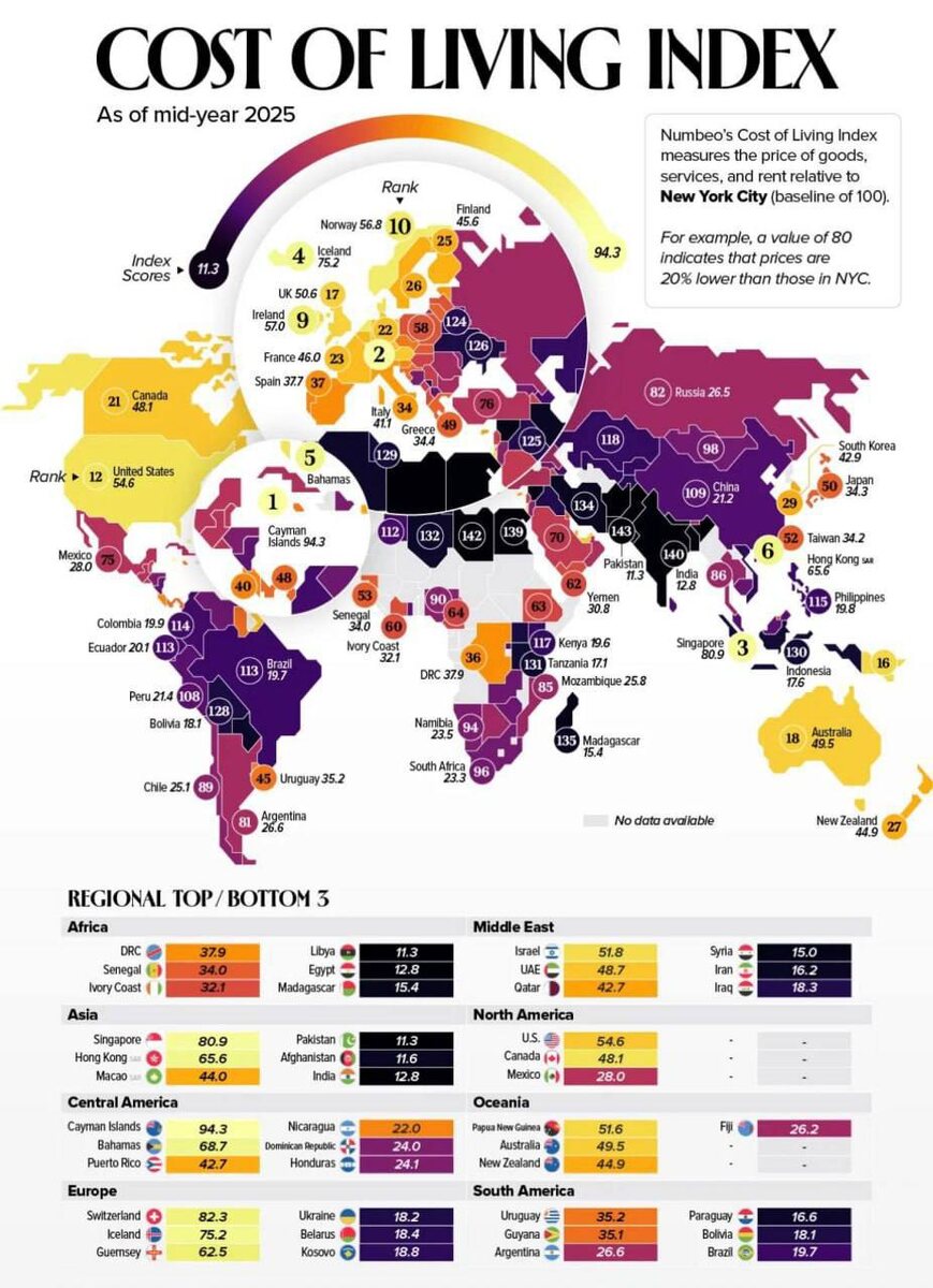Говорят, Москва — дорогой город? Согласно индексу Numbeo жизнь в столице обойдется чуть ли не два раза дешевле, чем в Нью-Йорке. Глобальный индекс стоимости жизни от Numbeo — показатель, который учитывает, насколько дорогая жизнь в той или иной стране или городе по сравнению с Большим Яблоком. Нью-Йорк в этой системе оценён ровно в 100 пунктов. Если индекс для какого-то места равен 50, значит жить там примерно вдвое дешевле. Значение 80 будет означать, что цены ниже на всё на 20%. Этот индекс складывается из стоимости продуктов, услуг, транспорта и аренды жилья. Москва в этом рейтинге имеет индекс 39 (столичная жизнь на 61% дешевле, чем в люксовом Нью-Йорке), а вся Россия — 26,5. Самые дорогие — Каймановы острова (94,3), Швейцария (82,3), Сингапур (80,9). Одна из задач компании "Кулиговская и Партнёры" - посвятить в искусство жить красиво✨ Познакомьтесь с эксклюзивной резиденцией с по-настоящему высоким уровнем жизни и максимальным комфортом👌