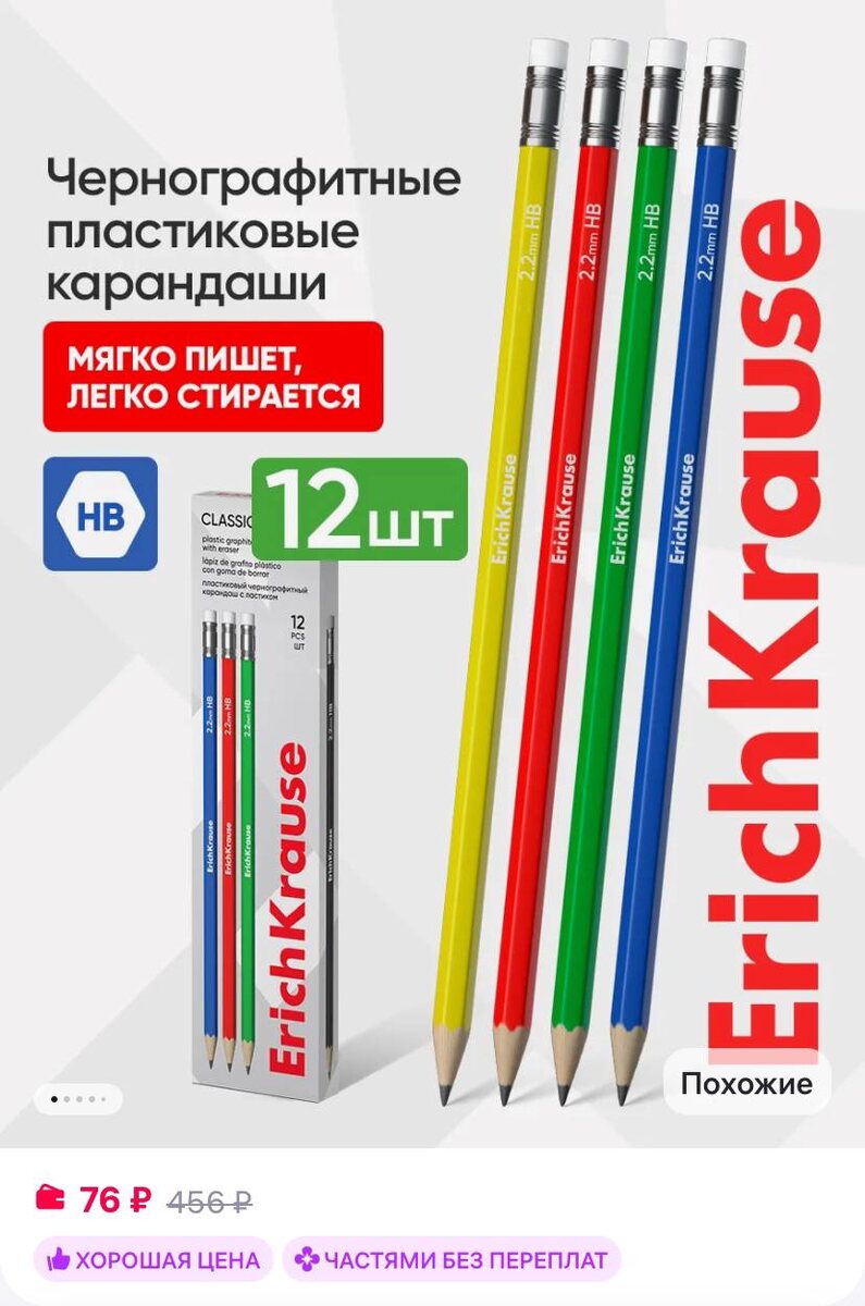 Erichkrause Простые карандаши для школы HB с ластиком набор 12 штук https://www.wildberries.ru/catalog/474517403/detail.aspx?size=664770233 ✅ Подписаться 🔣 Бот с промокодами