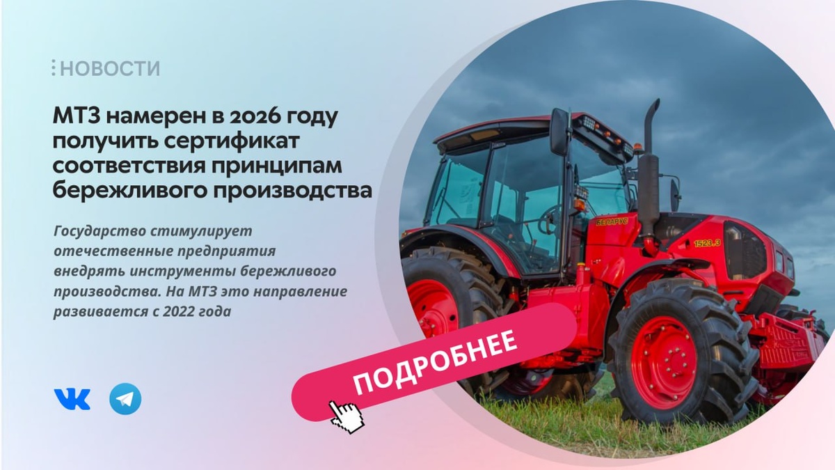 🔰МТЗ намерен в 2026 году получить сертификат соответствия принципам бережливого производства
