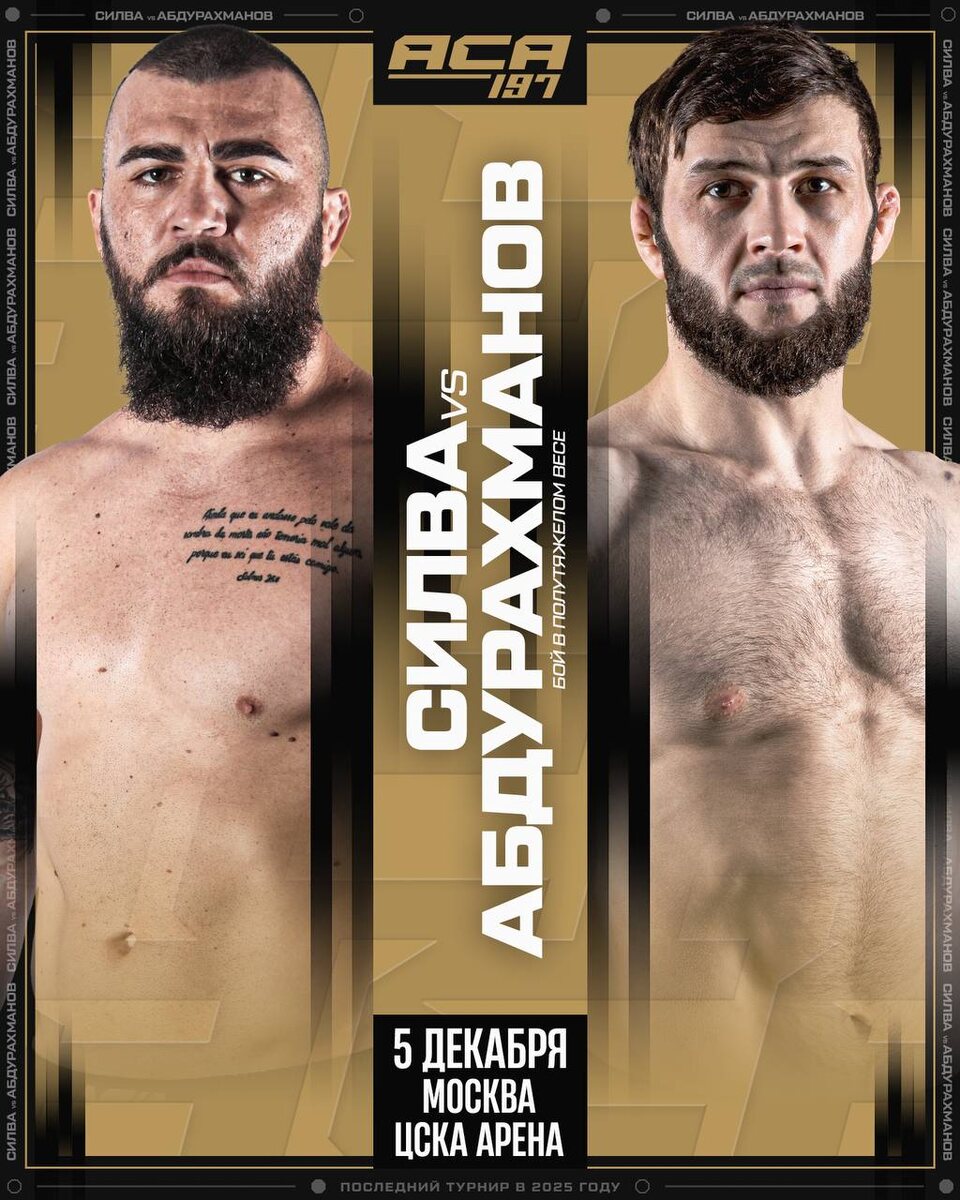 🔜 В Москве на ACA 197 столкнутся два элитных полутяжеловеса: бразильский нокаутёр Леонардо Силва против чеченского мастера сабмишнов - Саламу Абдурахманова. Этот бой станет настоящей проверкой воли и мастерства. Не пропустите! ❌Руслан Габараев выбывает с противостояния против Саламу из-за травмы. 🏟️ЦСКА Арена | 5 декабря📆 🎟️ Билеты 🛒