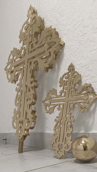 Работа выполнена в титановой печи, и именно благодаря этой технологии кресты получили невероятное сияние — спокойное, тёплое, почти живое.