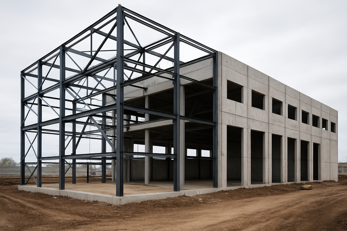 При проектировании склада или производственного здания чаще всего выбирают между двумя технологиями — металлокаркасом и монолитом. Разбираем их преимущества простым языком. Металлокаркас - это лёгкая и прочная стальная конструкция, которая собирается как конструктор. Плюсы: Минусы: Монолитные здания отливаются из бетона прямо на площадке. Плюсы: Минусы: Если важны скорость, площадь и экономия — металлокаркас.