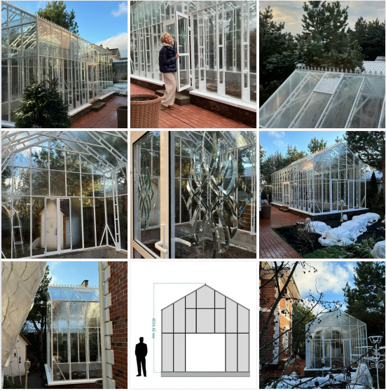 Размер 4/8. Мне очень хотелось высокую теплицу, которая будет служить мне с марта по конец ноября! Стекло обычное 5 мм. Стеклопакет делать не стала, так как ценник был нереальный. Буду теперь думать, как ее отопить весной. Нужно компетентное мнение. Из дома батареи тащить нельзя. Что думаете?