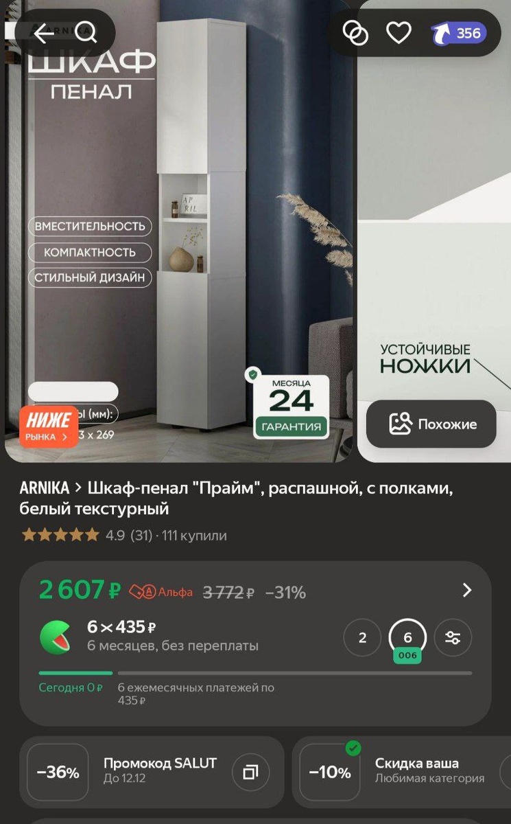 Шкаф-пенал "Прайм", распашной, с полками, белый текстурный за 2607₽