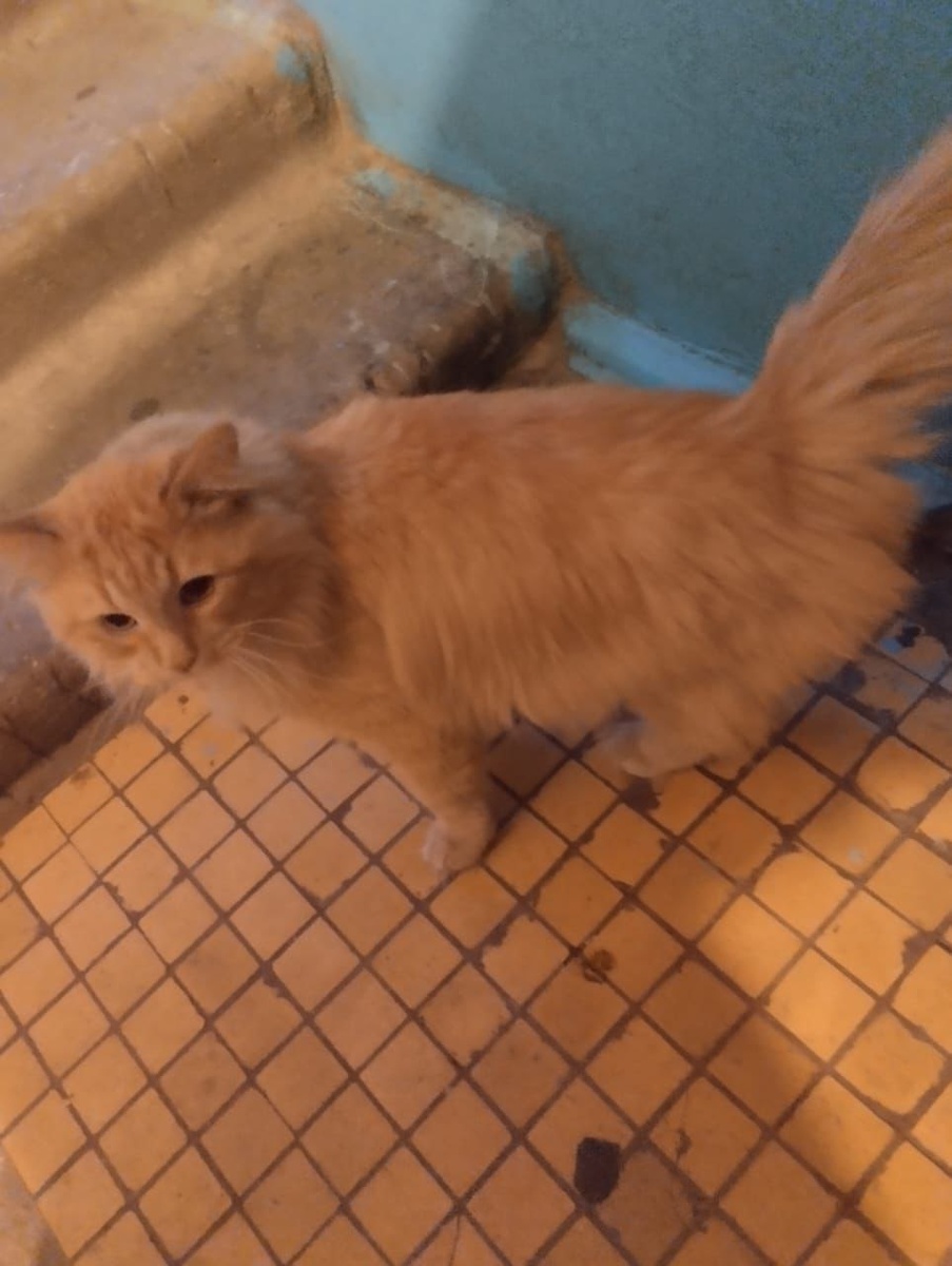 Чей котик потерялся?видно что домашний. сидит весь день в подъезде, улица Тевосяна дом 24Б