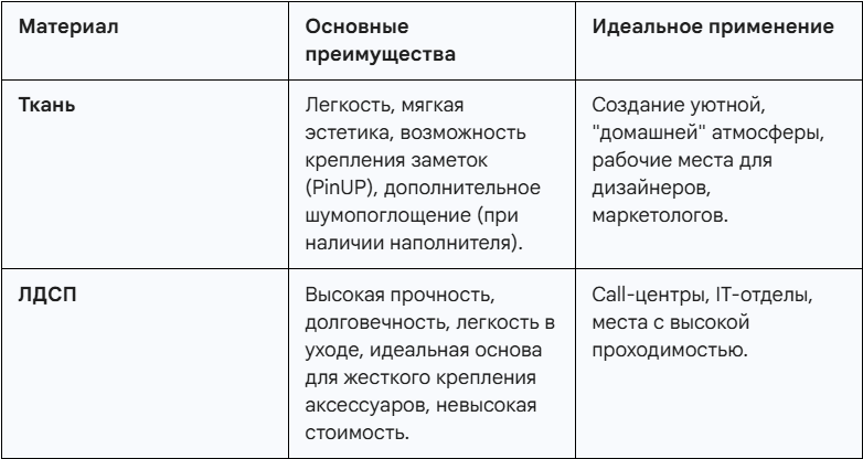 В первой части нашего руководства мы рассмотрели, как акустические решения AcustiX создают тишину. Однако для полноценной организации рабочего пространства необходима и физическая, визуальная граница. Во второй части "Правильный Офис" представляет сбалансированный ассортимент решений от ведущих российских производителей: настольные экраны и мобильные перегородки из ЛДСП и ткани, которые обеспечивают приватность, гибкость планировки и стильный вид. Офисные экраны — это незаменимый инструмент для создания личного пространства в условиях открытых планировок (open space) и бенч-систем. Они крепятся прямо к столу и решают две основные задачи: визуальная приватность и организация рабочего места. При выборе настольного экрана важно учитывать специфику работы отдела, чтобы определить, какой материал подойдет лучше с точки зрения функциональности и эстетики. "Правильный Офис" предлагает следующие популярные модели, которые вы можете выбрать под свои нужды: Мобильные перегородки — это конструкци