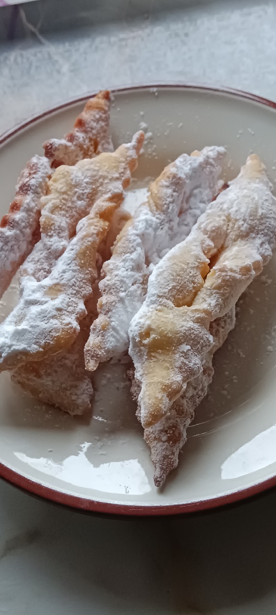 Хворост жарить на растительном масле и посыпать сахарной пудрой .
