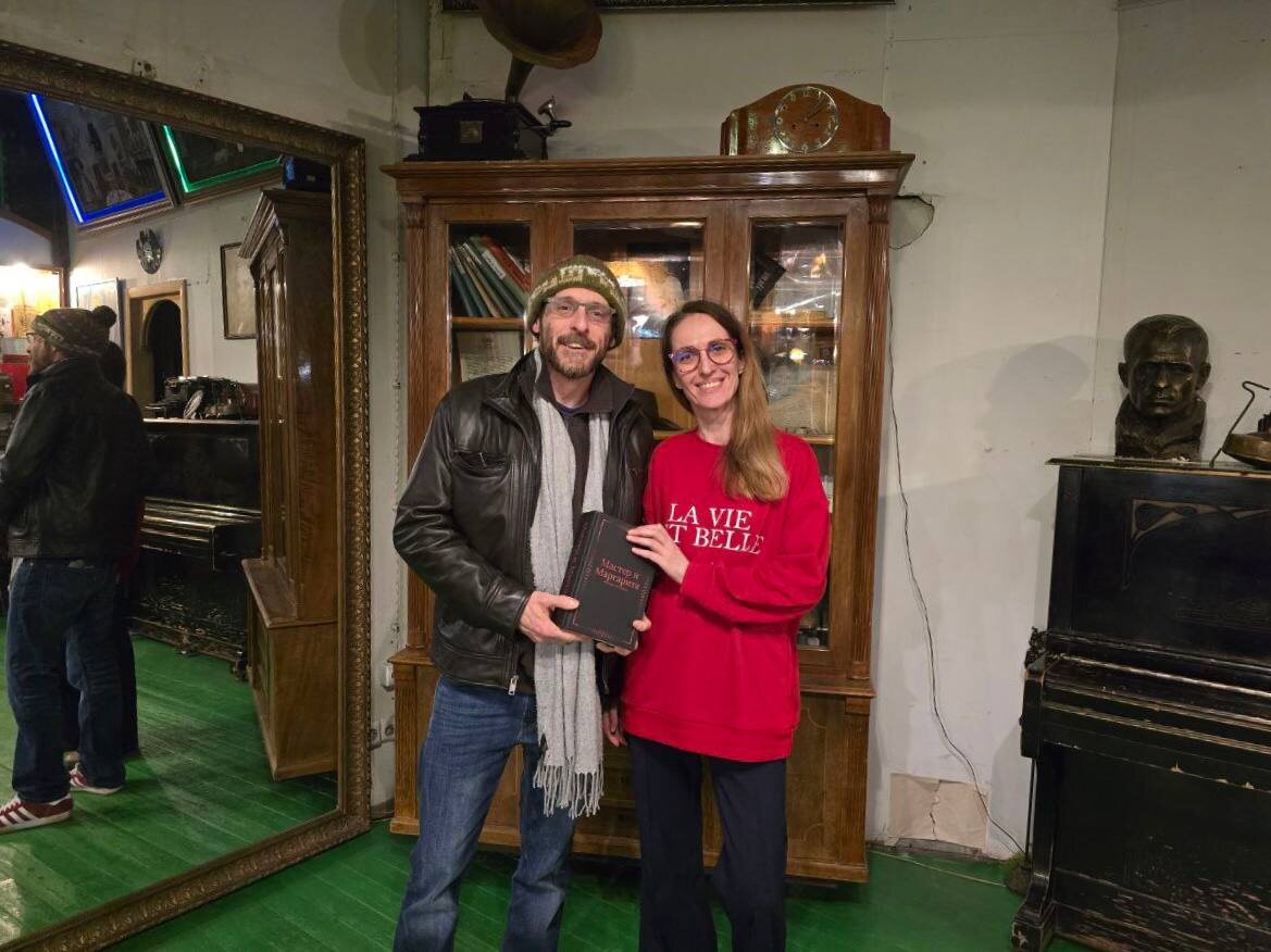 В дар музею-театру «Булгаковский дом» передали необычную книгу «Мастер и Маргарита». Автор создал ее для своих друзей и для нашего музея. 📝 В книге параллельно идет текст на двух языках: на русском и на английском. 🕯️ Автор отметил, что это был его первый русский роман. И после прочтения он понял, что нужно учить язык и читать его в оригинале. Перевел на английский, издал несколько копий. Он пишет: «Я надеялся впервые прочитать классический роман Михаила Булгакова Мастер и Маргарита в двуязычном формате, но обнаружил, что такая версия еще не была издана коммерчески, и решил создать ее сам». 🔖 Книга теперь хранится в нашем музее, а в нашем театре идет спектакль на русском «Мастер и Маргарита». Ближайший показ 27 ноября. Билеты: https://clck.ru/3QUVg9