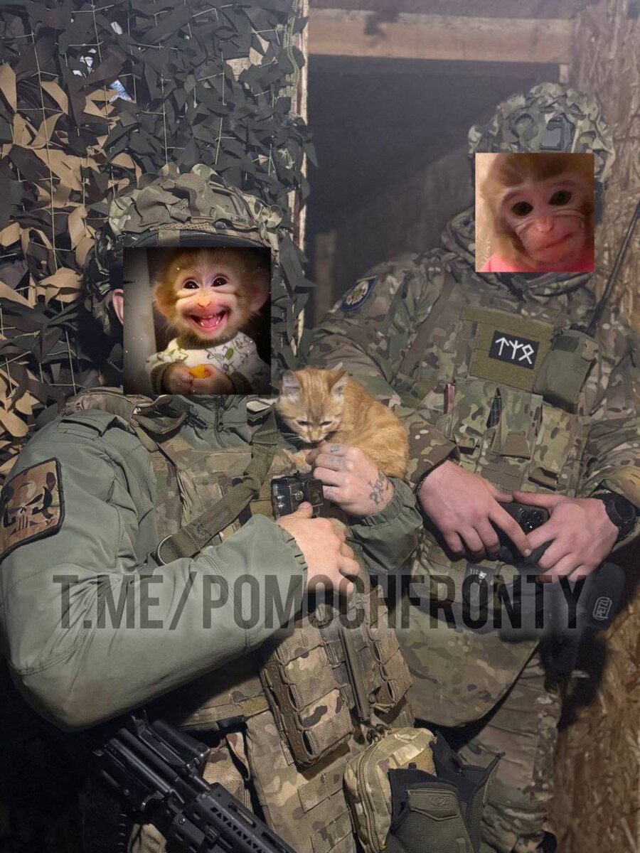Спасли котика от хохлов. Он буквально в серой зоне на опорнике пустом бегал. Военный мой забрал с собой.