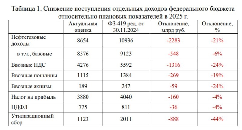 🤩 Наглядная таблица, составленная экспертами ЦМАКП, о потерях федерального бюджета в текущем году
