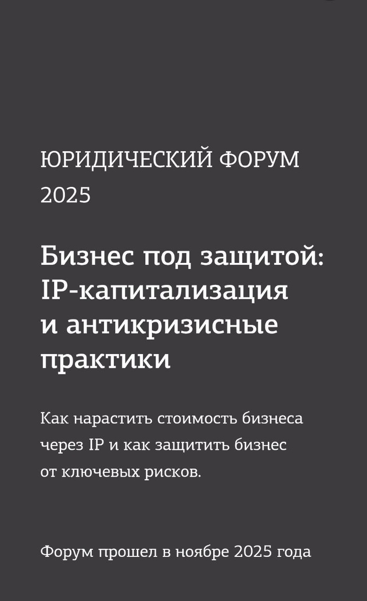 🎤 Деловой Петербург. Бизнес под защитой: IP-капитализация и антикризисные практики Этот юридический форум стал моим топ № 1 в рейтинге «Получи много пользы по IP» за одно утро. ❤️ Благодарю своих партнеров, юридическую компанию Impavo, за организацию моего участия. Программа и спикеры: ➡️ Недобросовестная регистрация товарного знака. Практика Санкт-Петербургского УФАС России Полина Величко, начальник отдела антимонопольного контроля хозяйствующих субъектов и рекламы Управления Федеральной антимонопольной службы по Санкт-Петербургу Практические аспекты рассмотрения дел в УФАС от представителя УФАС - редкая и полезная информация. ➡️ Законодательные новеллы в интеллектуальном праве в 2025 Виктор Станковский, партнер, патентный поверенный, «Городисский и Партнеры» Коллеги все еще в шоке от изменения пошлин на регистрацию товарных знаков, и да, всем это отозвалось 😅 ➡️ Интеллектуальная собственность при контрактном производстве в РФ и за рубежом Ярослава Горбунова, партнер, патент