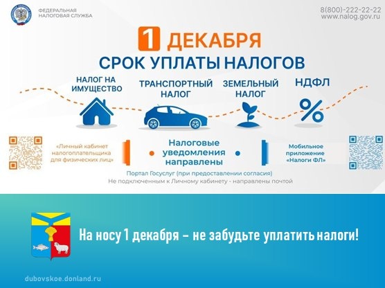 Управление Федеральной налоговой службы по Ростовской области напоминает, что 1 декабря 2025 года истекает срок уплаты налогов