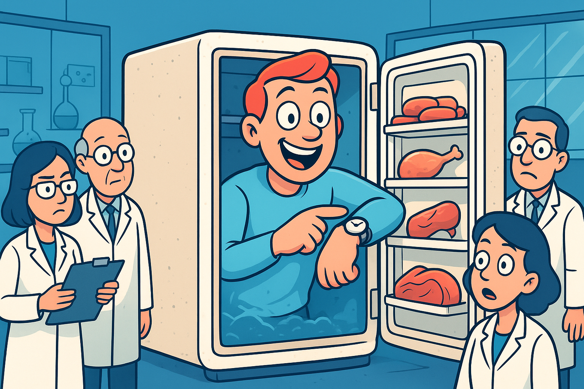 Привет, дорогой читатель, которому пока еще не включили отопление! Сегодня поговорим о самом отчаянном новшестве этого тысячелетия — крионике. Это когда твое тело после смерти превращают в элитную заморозку в надежде, что через сто лет какой-нибудь ученый разморозит тебя как пельмень и скажет: «Ну что, братан, просыпайся, тут Игру Престолов пересняли». Представьте: вы умерли. Но не совсем! Вам вводят антикоагулянты (чтобы кровь не свернулась), заменяют жидкости криопротектором (это как антифриз для человека) и медленно охлаждают до -196°C. Тело хранят в жидком азоте вертикально — на случай утечки, чтобы мозг, как самая ценная часть, всегда оставался в холоде. Голова вниз — как бутылка шампанского в погребе.