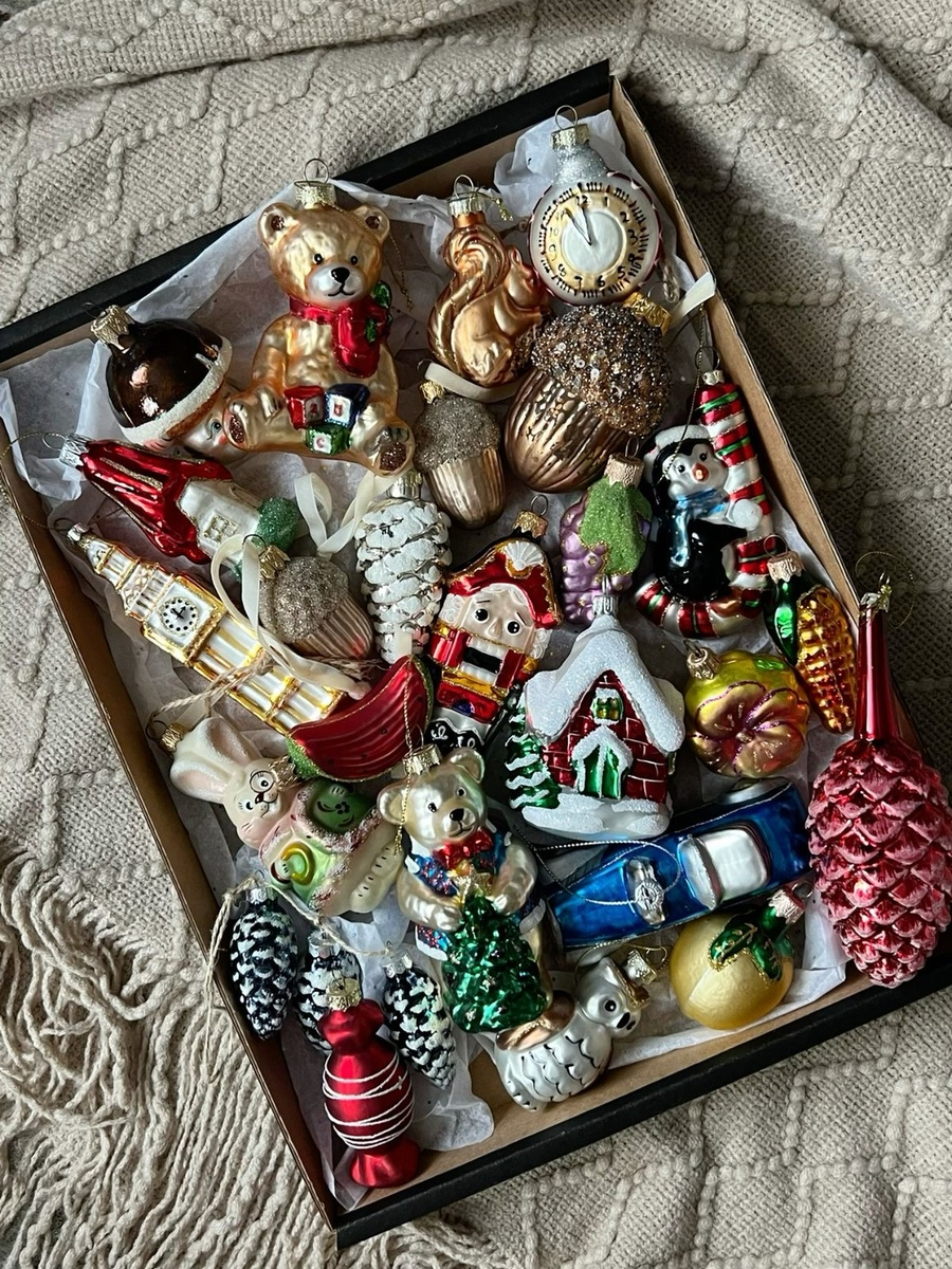 Эти ёлочные игрушки тоже из Индии. Они сделаны из стекла. Довольно тяжёлые, потому что стекло толстое. Размер игрушек - 8 см.