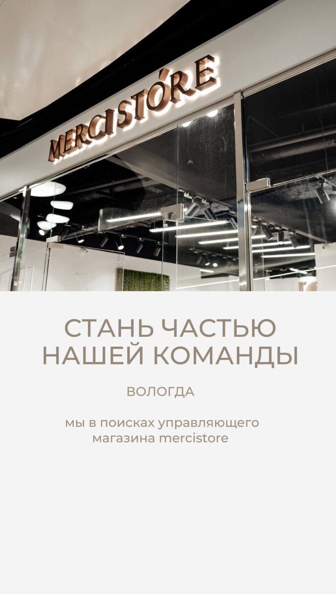 📍ВОЛОГДА Ищем в команду MERCISTORE (ТРЦ Мармелад): • продавца - консультанта • управляющего Подробнее о вакансии (управляющий): https://www.avito.ru/vologda/vakansii/upravlyayuschiy_magazina_zhenskoy_odezhdy_trts_marmelad_7798559371 Подробнее во вакансии (продавец - консультант): https://hh.ru/vacancy/127472593?from=share_ios