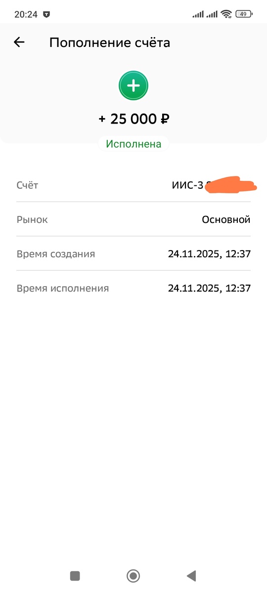Наверно для многих такая сумма не будет чем то сверх ординарным, однако именно она стала для меня самой крупной в этом году. Сегодня, я пополнил свой иис на сумму в 25 000 рублей. Сразу возникают несколько вопросов, учитывая, что обычно мои пополнения редко превышают пару тысяч рублей. Кто давно следит за мной, наверно уже понял почему именно такая сумма. Для меня это стало уже традицией, в конце каждого года, я обычно пополняю свой иис на сумму будущего вычета. То есть, грубо говоря, по моим расчётам, с учётом этих 25 000 рублей, в 2026 году я должен получить вычет чуть больше 25000 рублей, таким образом я пополняю свой портфель в счёт будущего вычета. Что это мне даёт? В принципе ничего такого, просто я получу дополнительные 13% , с суммы равной вычету. Однако, как вы понимаете, деньги у меня появились не просто так, их я занял из нашего семейного резервного фонда, поэтому как только я получу вычет, я сразу же обратно верну деньги в резервный фонд, возможно даже с процентами?