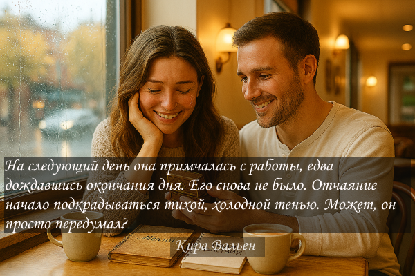 На следующий день она примчалась с работы, едва дождавшись окончания дня. Его снова не было. Отчаяние начало подкрадываться тихой, холодной тенью. Может, он просто передумал? Может, все это было лишь красивым осенним романом, не предназначенным для зимы?