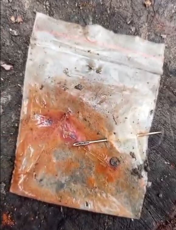 Всем здравия! Вот такие "подарочки" в виде подкладов могут приносить всякие нехорошие люди. Здесь фото показывает, что сделано на иголки было, что внутри находилось, помимо еще двух иголок крестом связанных, я не смотрела. У нас были дожди 2-3 дня и потому внутри вода окрашена ржавчиной. Подкладу дней 4-5. Помимо иголок подклад может быть в виде яиц, ниток скрученных, тряпок, перьев, крупы, воды, земли, мусора, закопанных консервных банок с различным содержимым (что внутри банки вам открывать смотреть нельзя!). Вчера на отливке воском показало эти иголки и крест этот на сердце, сегодня подклад был обнаружен. Как утилизировать данный подклад? Запомним золотые 2 правила: