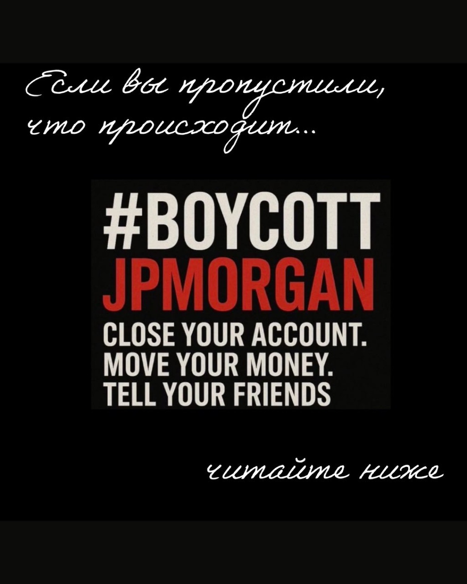 ❌Бойкот JPMorgan набирает силу В последние дни массовые призывы к бойкоту JPMorgan усилились на фоне новостей, касающихся исключения компаний с большими Bitcoin-резервами из ключевых индексов MSCI. В числе компаний, попавших под угрозу, оказалась Strategy — одна из крупнейших фирм на криптовалютном рынке. Аналитики JPMorgan заявили, что компании, владеющие значительными резервами ₿itcoin, в том числе Strategy, могут потерять место в индексе MSCI. Это решение несет серьезные последствия для оценки этих компаний и может повлиять на инвестиции, а также на их будущую капитализацию. Исключение из таких индексов может привести к массовым оттокам капитала и ослаблению позиций криптовалютных компаний на рынке. Подобные действия воспринимаются как давление на криптосектор и попытка манипуляции рыночной ситуацией. Крипто-сообщество уже отреагировало на такие действия со стороны JPMorgan. Возникли призывы закрыть счета и вывести деньги из банка. Вскоре они переросли в полноценную кампанию с х