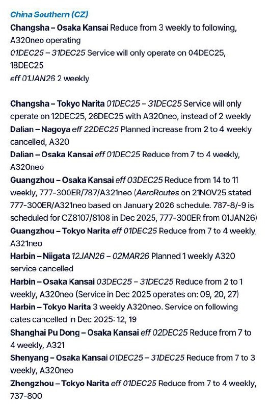⚡️⚡️⚡️Китайские авиакомпании обнародовали списки отменённых рейсов в Японию