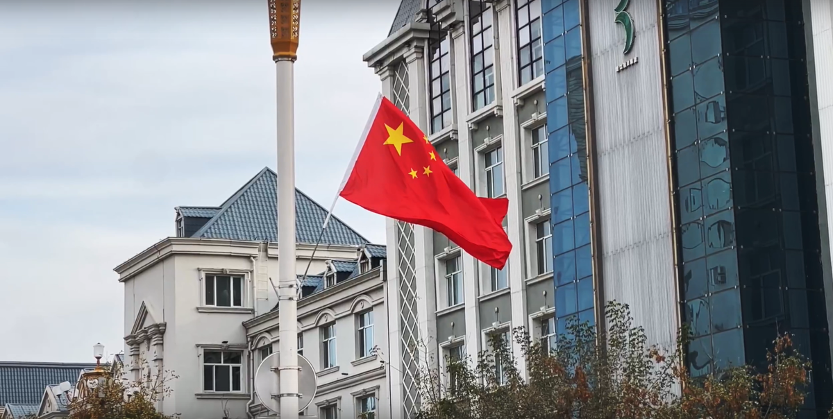 Сначала мы приехали посмотреть на визитную карточку города, где величественно развевается флаг КНР на флагштоке высотой 56 метров.