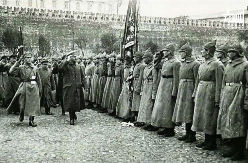 День 382-й Многие думают, что слово «офицер» не употреблялось в отношении командиров Красной Армии. Но это не так. В частности, 14 ноября 1918 года главный комиссар военно-учебных заведений Игнатий Дзевялтовский издал приказ № 314 «Об организации Дня Красного Офицера». И действительно, 24 ноября в Москве состоялся парад курсантов военно-учебных заведений. Колонны подошли на Советскую площадь (знаете, там, где нынче на Тверской памятник Долгорукому). И здесь с балкона Моссовета к «красным офицерам» обратился Ленин: «Приветствую вас от имени народных комиссаров. Когда я думаю о задачах нашей армии и красных офицеров, я вспоминаю один случай, которому я был свидетелем не так давно, в вагоне Финляндской дороги. Я видел, что публика чему-то улыбается, слушая одну старушку, и попросил перевести мне ее слова. Финка, сравнивая старых солдат с революционными, говорила, что первые защищали интересы буржуазии и помещиков, а вторые — бедноты. “Раньше бедняк жестоко расплачивался за каждое взятое б
