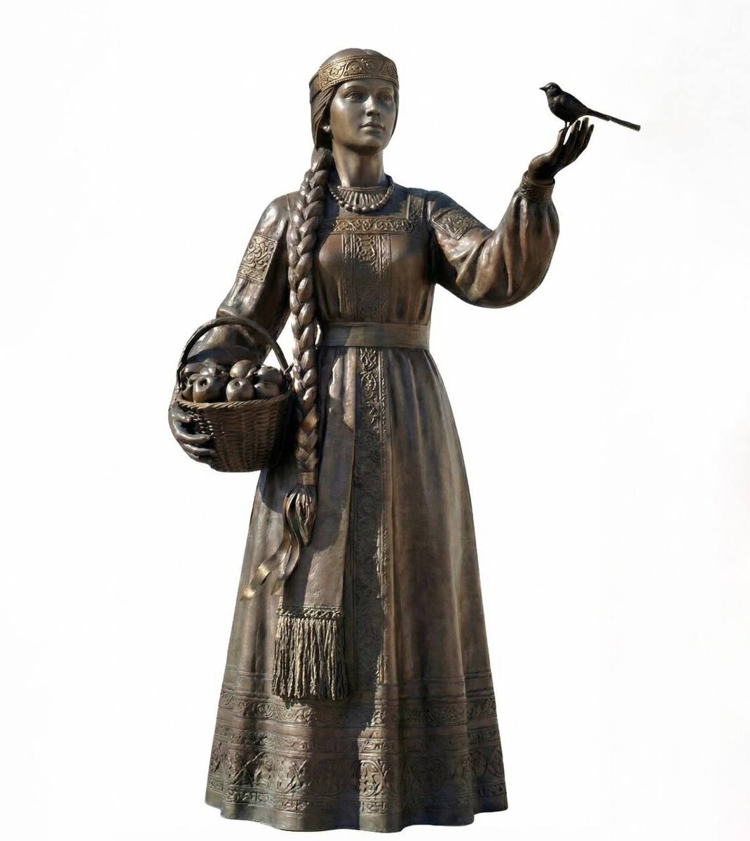 В ответ на пост Александр Хинштейн показал окончательный вариант скульптуры «Куряночки» По результатам опроса 60% — это 42 279 человек — выбрали первый вариант в списке, но в проекте на девушке не было кокошника. — В русском традиционном костюме кокошник — это праздничный головной убор, который носили замужние женщины, пряча за него волосы. В нашем случае девушка молодая и с косой. Исторически свободные дамы украшали головы лентами, венцами и повязками, — напомнил Александр Евсеевич. С учётом мнения людей и специалистов по народным костюмам решено украсить голову «Куряночки» лентой.