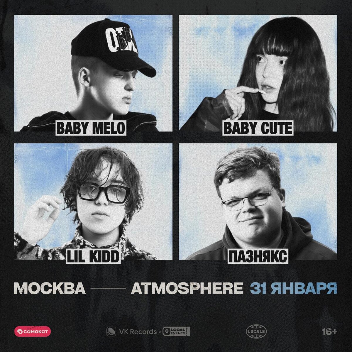 🎫 – Baby Melo, Baby Cute, пазнякс, lil Kidd: специальное шоу в Москве 🎤 – Baby Melo, Baby Cute, пазнякс, lil Kidd 📍 – «Atmosphere», Москва, Шмитовский пр. д. 32А стр. 1 🗓 – 31 января 2026 💵 – от 1 249 руб. 🔗 – билеты (16+) #концерты #билетынаконцерт #babymelo #babycute #пазнякс #lilkidd #москва #atmospheremsk #vkrecords #localevents 👉 Список концертов: ноябрь • декабрь @mainstreamusic