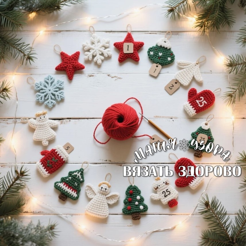 Рекомендую создавать календарь на весь декабрь — с 1 по 31 число, где каждый день вы вяжете небольшой проект крючком. Это может быть ёлочная игрушка, украшение, элемент декора или подарок близким. 💫