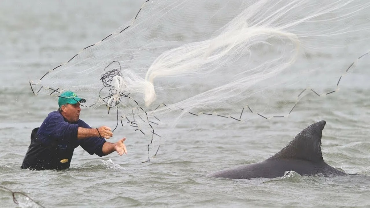 В Лагуне, Бразилия, дельфины-афалины активно сгоняют рыбу к местным рыбакам, а затем подают им сигнал, шлепая хвостом по воде, чтобы рыбаки