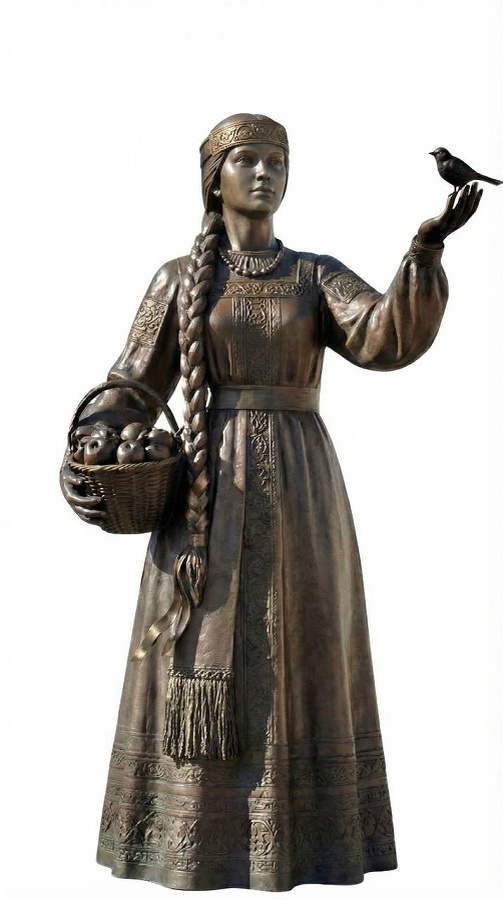 Окончательный вариант скульптуры «Куряночка», которую установят перед одноименным торговым центром на улице Дзержинского, представил губернатор Александр Хинштейн. На голову девушки, которую выбрало большинство проголосовавших курян, надели ленту. В одной руке она держит корзину с курской антоновкой, а в другой — соловья. Это символы Курского края. «В русском традиционном костюме кокошник — это праздничный головной убор, который носили замужние женщины, пряча за него волосы. В нашем случае девушка — молодая и с косой — Куряночка. Исторически, свободные дамы украшали головы лентами, венцами и повязками», — пояснил глава региона. Он сообщил, что с учетом мнения людей и специалистов по народным костюмам мы украсили голову Куряночки лентой. «Этот вариант соответствует традициям», — отметил губернатор. Напомним, скульптуру установит за свой счет подрядчик, который сорвал сроки благоустройства общественной территории перед ТЦ «Куряночка». Ранее сообщалась, что она будет установлена до конца