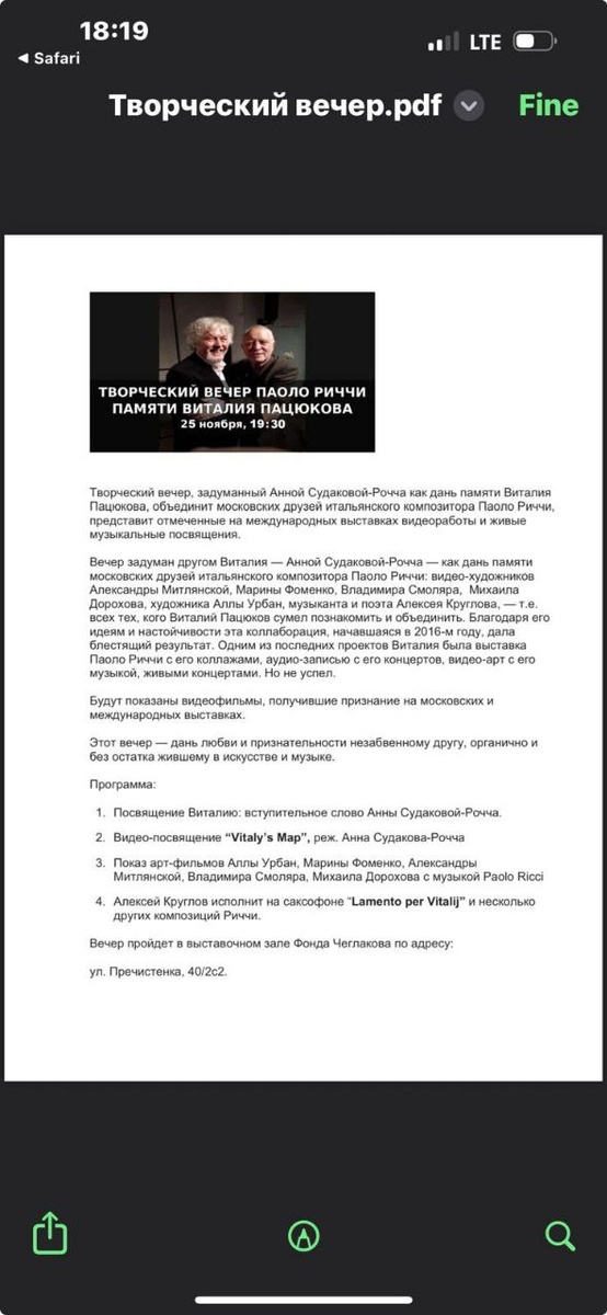 Дорогие друзья, завтра, 25 ноября участвую в вечере композитора Паоло Риччи, посвящённом памяти Виталия Пацюкова
