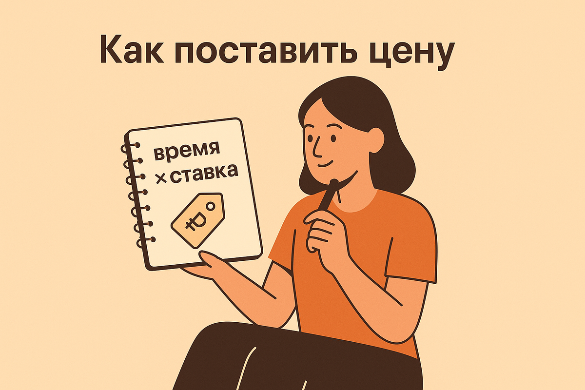 Давай без сложных формул. Есть простой, здравый способ поставить цену так, чтобы и тебе было ок, и клиент понимал, за что платит. Новичку не нужна «рыночная магия». Нужна опора на реальность: сколько часов уходит и сколько ты хочешь получать за час. Шаги: Базовую ставку берём не «с потолка», а из твоей цели по доходу. Формула простая: (Твой желаемый доход в месяц) / (сколько часов ты готов работать в месяц) Пример: