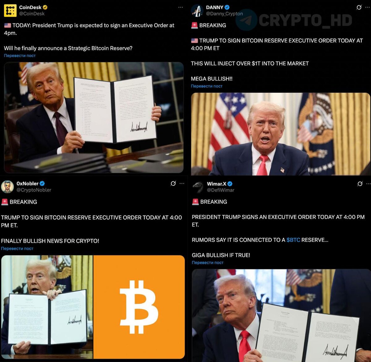 👀 Дональд Трамп сегодня в 00:00 мск подпишет указ, связанный с BTC-резервом – в Twitter активно разгоняют подобные слухи.