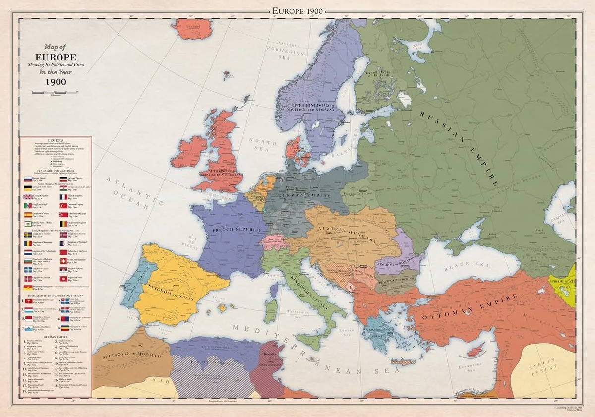 Карта Европы 1900 года Вы не знаете, а где на ней все те смелые и гордые государства, которые ненавидят Россию и из которых укомплектована значительная, часть ЕС и НАТО? ✅ Николай Стариков 👉🏻 в MAX