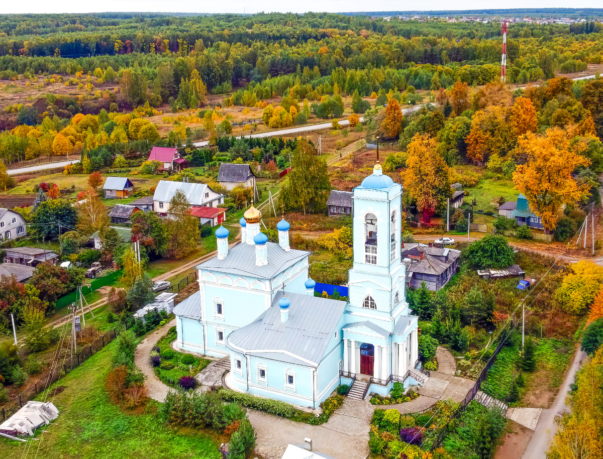 Общее число прихожан достигало 850 человек. В приход села входили также деревни Авксентьево, Селютинка, Татьянино, Вески, Красная Роща и Хохряковка, а с ХVIII века - деревня Иваньково. При этом в двух первых деревнях имелись деревянные часовни, а около Хохряковки каменный столб-часовня на месте бывшего там Симеоновского мужского монастыря. В Красной Роще до нач. ХVII века существовала деревянная церковь во имя Воздвижения Креста Господня.