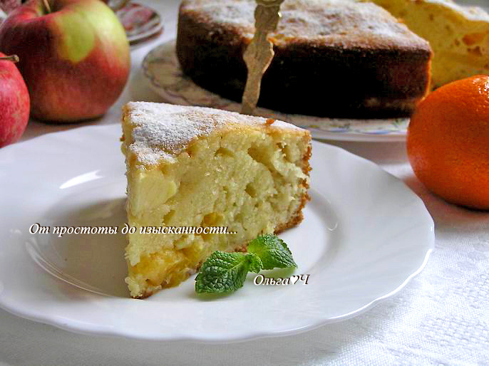 сахарная пудра для посыпки Приготовление: Яйца немного взбейте с сахаром, добавьте размягченное сливочное масло, сметану, взбейте. Затем добавьте муку, разрыхлитель и ванилин. Тщательно перемешайте. Яблоки очистите от кожуры, вырежьте сердцевину, нарежьте кусочками. Мандарин разберите на дольки. Добавьте фрукты в тесто. Перемешайте. Выложите в форму, смазанную маслом (дно застелите бумагой для выпечки) Выпекайте при 180*С 25-30 минут до румяного цвета и сухой палочки. Остудите, выньте из формы, посыпьте сахарной пудрой. Подавайте к столу. Приятного аппетита! Вам также могут понравиться: