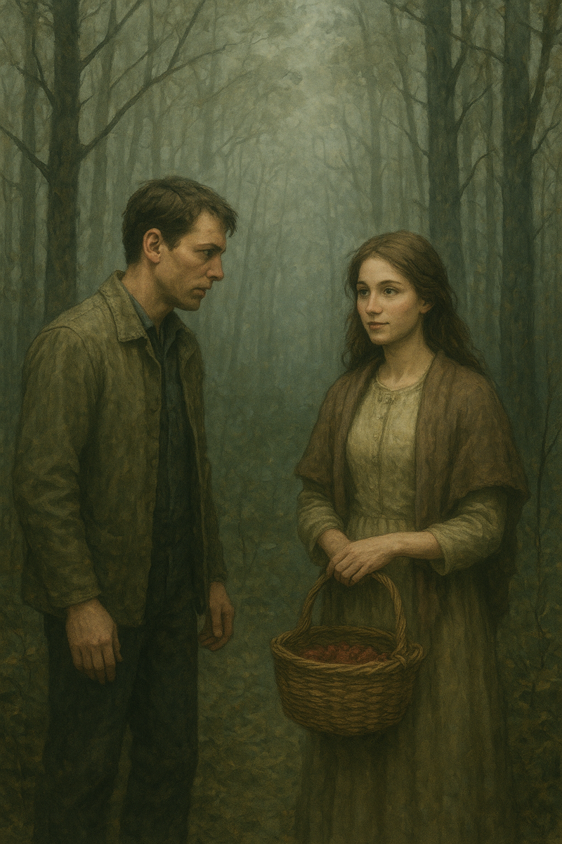Тот день запомнился мне навсегда — впервые за всю жизнь я по-настоящему заблудился. А ведь лес для меня не чужая территория: за годы я исходил десятки таких троп. Но в тот раз всё пошло не по плану. Утром словно что-то потянуло меня туда. Без особой цели углубился дальше обычного — и внезапно осознал, что потерял ориентиры. Небо затянуло облаками, что только усложнило ситуацию. Кстати, происходило всё это в те времена, когда о мобильных телефонах никто ещё и не слышал. Ноги уже начинали отказывать от усталости. Я всерьёз подумывал вскарабкаться на высокое дерево — оттуда наверняка можно разглядеть крыши дачного посёлка. В мои тридцать восемь, при моём росте, залезть на берёзу или осину не проблема. Приглядел подходящий вариант и уже двинулся к нему, когда между деревьями показалась фигура. Навстречу шла женщина примерно моих лет. Миловидная, с плетёной корзинкой в руках. Меня сразу зацепила её одежда — точь-в-точь как носили наши матери в молодости. Завязался разговор. Незнакомку звали