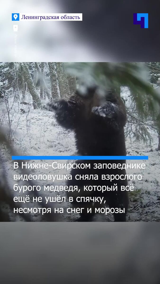 Видеоловушка Нижне-Свирского заповедника сняла взрослого бурого медведя, который пока не собирается в спячку, несмотря на снег и первые морозы. Биолог и автор канала «Каждой твари по паре» Павел Глазков с юмором заметил, что косолапый, похоже, решил «почесать спину напоследок», ведь впереди до четырех месяцев сна. Вроде бы и снежок выпал, и время пришло погрузиться в зимний сон, а косолапый бодр как никогда. Павел Глазков, биолог и автор канала «Каждой твари по паре» Сотрудники заповедника наблюдают за тем, когда хищники уходят в берлоги. Молодые медведи и самки, скорее всего, уже улеглись, а вот крупные самцы часто ждут устойчивых холодов и обильного снега.