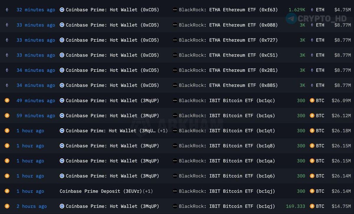 Bitcoin ΠΈ Ethereum ETF (#ETH). ΠΡΠΈΠΏΡΠΎΠ²Π°Π»ΡΡΠ½ΡΠΉ ΠΊΠΎΡΠ΅Π»Π΅ΠΊ Blackrock ΠΏΠΎΠΏΠΎΠ»Π½ΠΈΠ»ΡΡ Π½Π° 2269 BTC ($197m) ΠΈ 10,629 ETH ($10m) Π·Π° ΠΏΠΎΡΠ»Π΅Π΄Π½ΠΈΠ΅ Π΄Π²Π° ΡΠ°ΡΠ°. Π Π°Π½Π΅Π΅: ΠΏΡΠΎΠ΄Π°ΠΆΠΈ Crypto Headlines