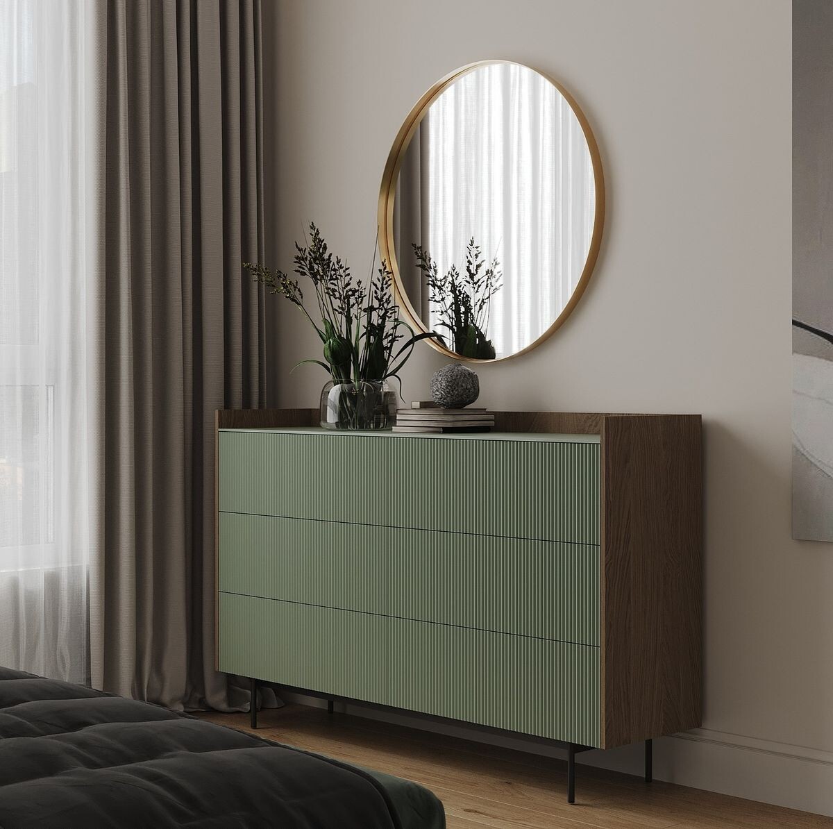 • скрытые механизмы, которые делают конструкцию более аккуратной и современной. Комод должен вписываться в пространство, не выбивая визуальный ритм комнаты. При индивидуальн