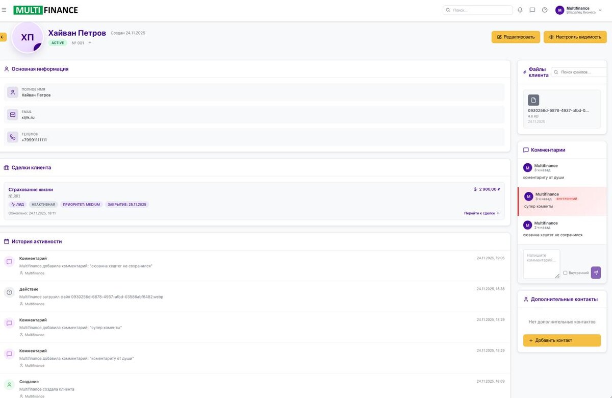 Я сегодня конкретно продвинулся в создании срм системы