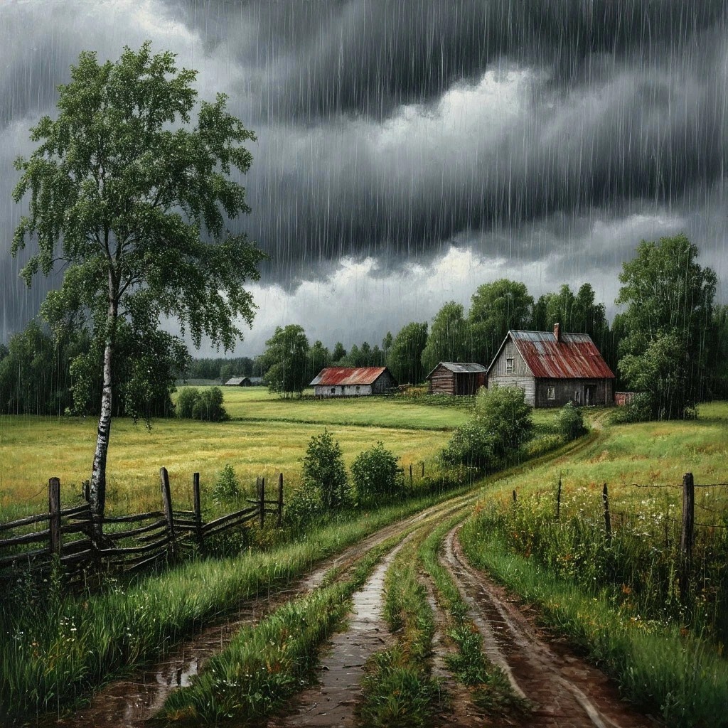 ГЛАВА 8. ДОЖДЬ, ЗОНТИК И ОДНО ПРИЗНАНИЕ. Следующий день выдался хмурым. С утра небо затянуло плотной серой пеленой, а к полудню начал накрапывать мелкий дождь. Лиза, вопреки непогоде, решила сходить в соседнюю деревню — надо было отнести бабушке Марье Ивановне лекарства, да и просто проведать старушку. Она накинула лёгкий плащ, взяла зонтик и вышла за калитку. Тропинка, обычно сухая и пыльная, размокла, превратившись в вязкую кашу. Лиза осторожно ступала, обходя лужи, а дождь всё усиливался, пробиваясь сквозь зонтик. — Лиза! Она обернулась. По тропинке, размашисто шагая через лужи, спешил Артём. В руках — ничего, только папка с рисунками. Волосы намокли, рубашка прилипла к плечам, но лицо сияло. — Ты что тут делаешь? — удивилась Лиза. — В такую погоду! — Тебя искал, — он остановился, переводя дух. — Узнал, что ты к Марье Ивановне пошла. Решил составить компанию. Лиза невольно улыбнулась: — Компанию под дождём? — А что? — он рассмеялся. — Зато романтично. Он подставил плеч