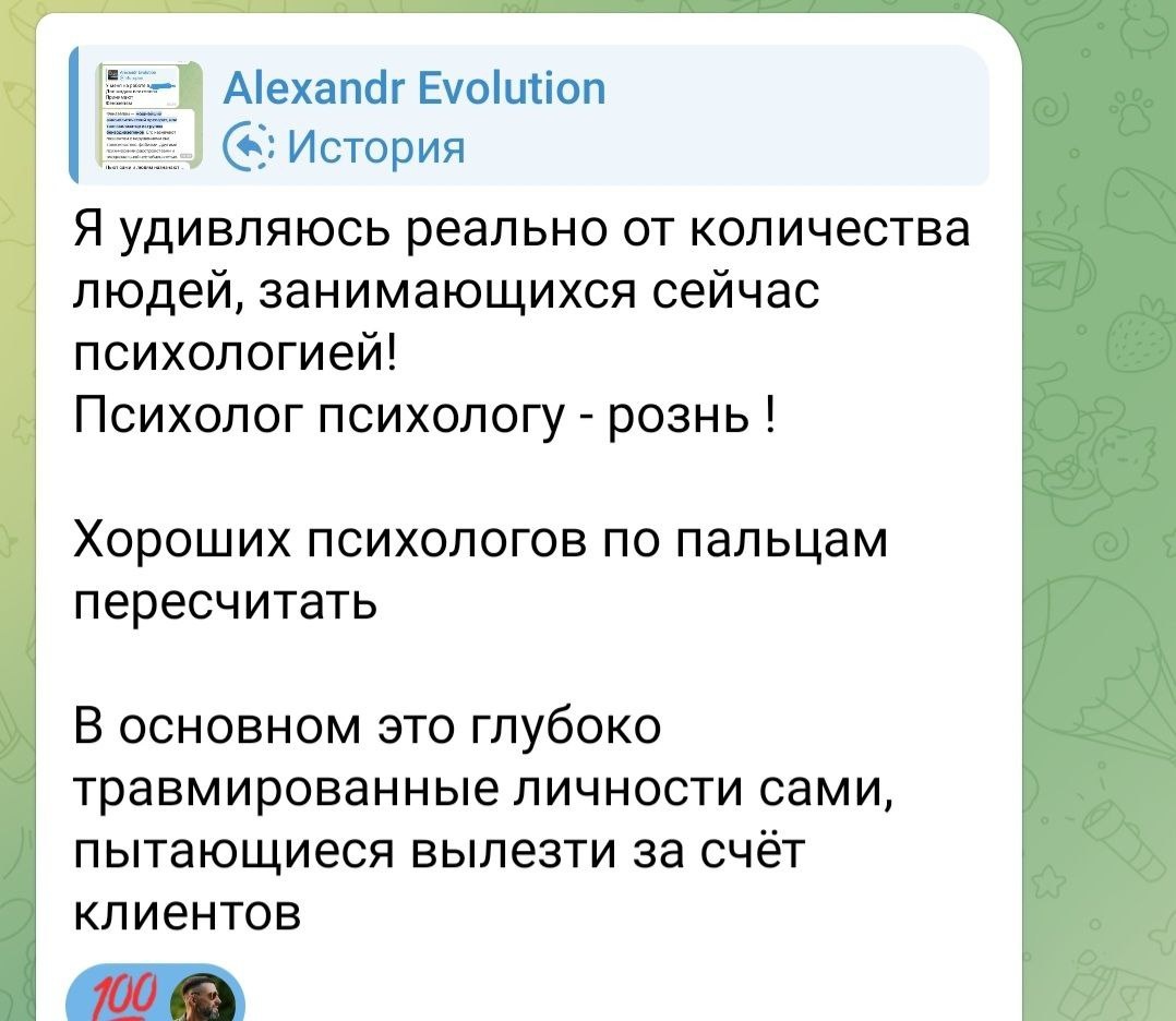 Накидали мне историй о психотерапии. И привели в сравнение наши подходы к саморегуляции и отзывы. Приятно получить высокую оценку. Но, по сути, так оно и есть. Чо уж там 😁