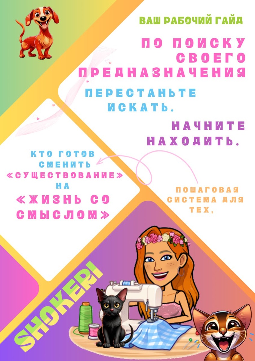 Нашёл себя — помог животным 🐾 Знакомо чувство, когда вроде бы всё есть, а чего-то главного — нет? Просыпаешься без энтузиазма, работа не греет, а мысль «в чём мой смысл?» становится навязчивым фоном. Книги и курсы дают общие слова, но не дают системы. Что, если есть другой путь? Мы создали «Рабочий гайд по поиску своего предназначения» — это не философский трактат, а практический конструктор. Вы получите: ✅ Чек-листы и упражнения для диагностики ваших сильных сторон и ценностей. ✅ Методику, которая поможет сложить разрозненные интересы в единую формулу. ✅ Понятный план первых шагов от той точки, где вы находитесь сейчас, к той, где вы — собой. Всё это — без воды, с конкретными рабочими листами и шаблонами. Но это еще не всё. Покупая этот гайд, вы делаете вклад в доброе дело. Все средства от продаж мы направим на разработку социальной сети для животных. Ваша покупка — это не только инвестиция в себя, но и реальная помощь тем, кто не может попросить о ней словами.