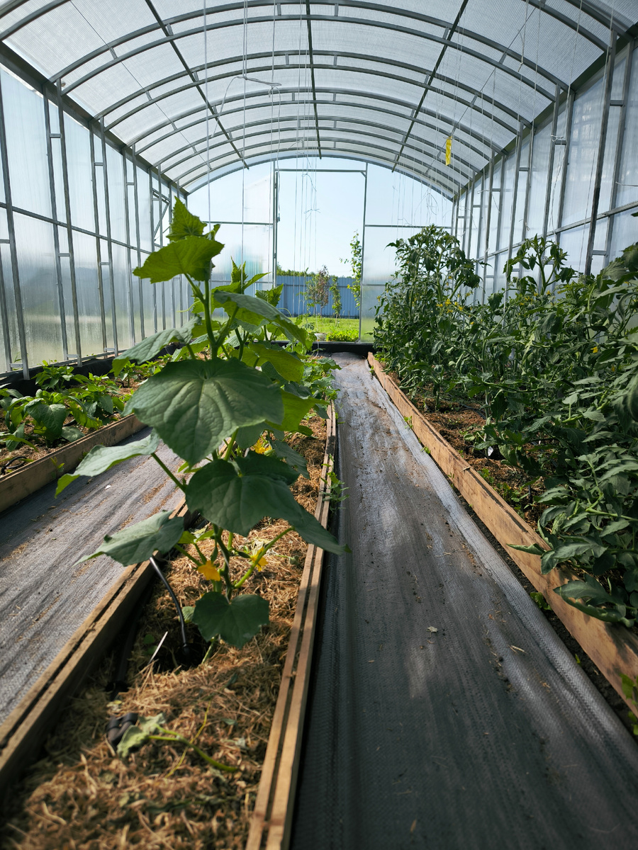 Подписывайтесь на ТГ канал💓Дача,дом, огород❤️ Дача наша в Тульской области в низине и у реки,поэтому климат от города очень отличается.Летом бывает от реки теплее чем в городе,а вот в холодное время конечно холоднее и даже в этом 2025 году в начале июня в городе был 0, у нас же было -4. Чеснок стоял как хрустальный и трава ломалась как стекло под ногами Спасибо родителям,у нас с этого года в эксплуатации теплица💪в начале мая неделю ночами были заморозки и нам с мужем приходилось ночевать на даче и топить обогревателями 8м теплицу, благо в деревне электричество дешевле🤭 Но мы люди блудные🤣любим друзей,родственников(наверное взаимно ,раз зовут 🤣) и в выходные нас часто не бывает. Так и в мае один день пропустили и не включили обогреватель. Итог- обмороженная полуживая рассада 🤦 Некоторые меньше,некоторые одни стволы выжили. Но томатам главное корни,а уж зелень он всегда нагонит, правда опоздание в плодоношении будет! Но природу не обмануть и этот год у нас ужасный конечно по пого