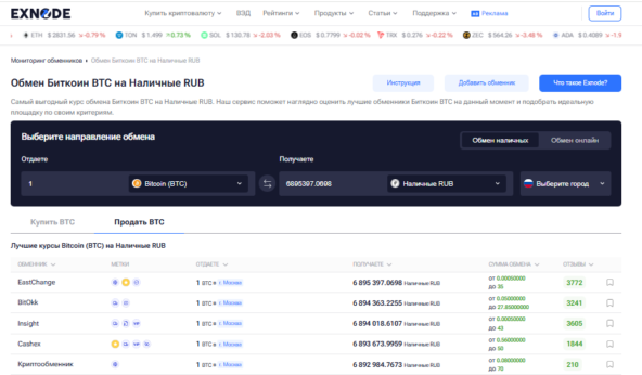 Первый шаг к тому, чтобы выгодно обменять биткоин — это анализ рынка. Пользователь заходит на независимый сервис Exnode, чтобы проверить актуальные курсы, изучить отзывы о пунктах обмена и выбрать для себя наиболее надежный вариант. Этот этап критически важен для безопасного обмена биткоина в России.