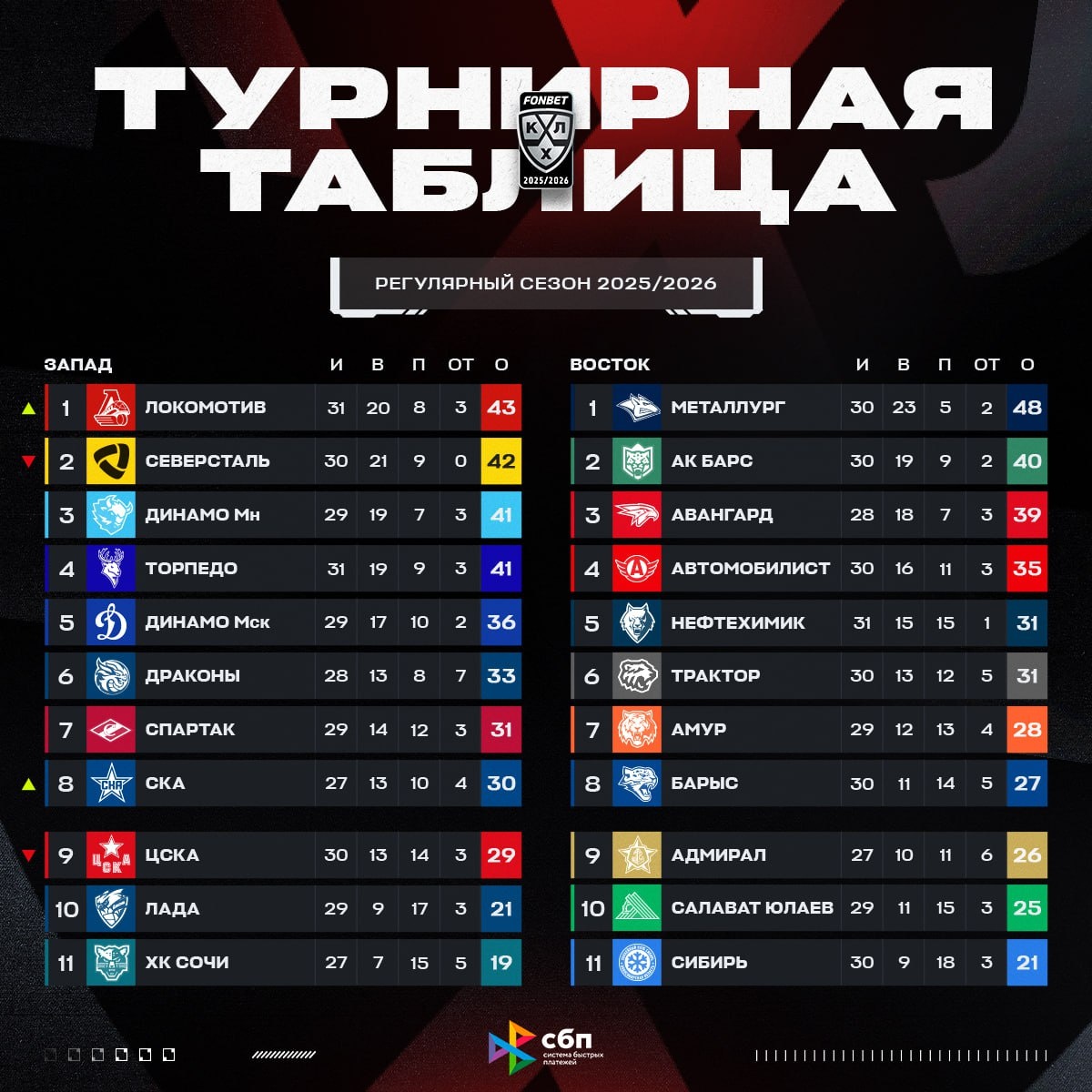 «Локомотив» вернулся на вершину Запада, СКА сместил ЦСКА из зоны плей-офф
