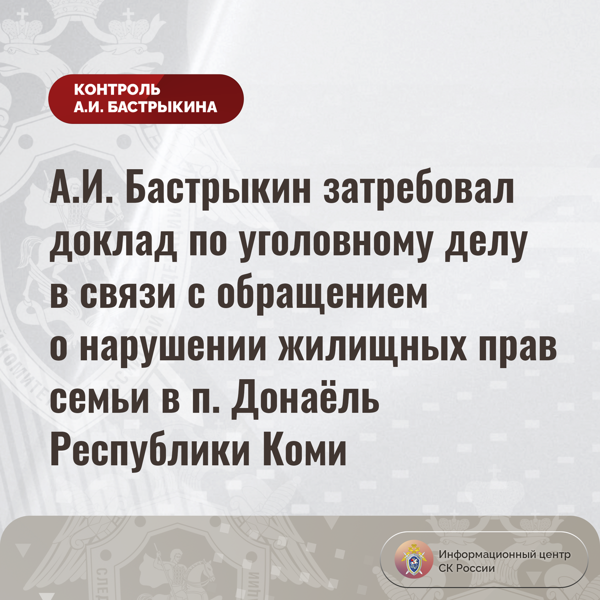 А.И. Бастрыкин затребовал доклад по уголовному делу в связи с обращением о нарушении жилищных прав семьи в п. Донаёль Республики Коми